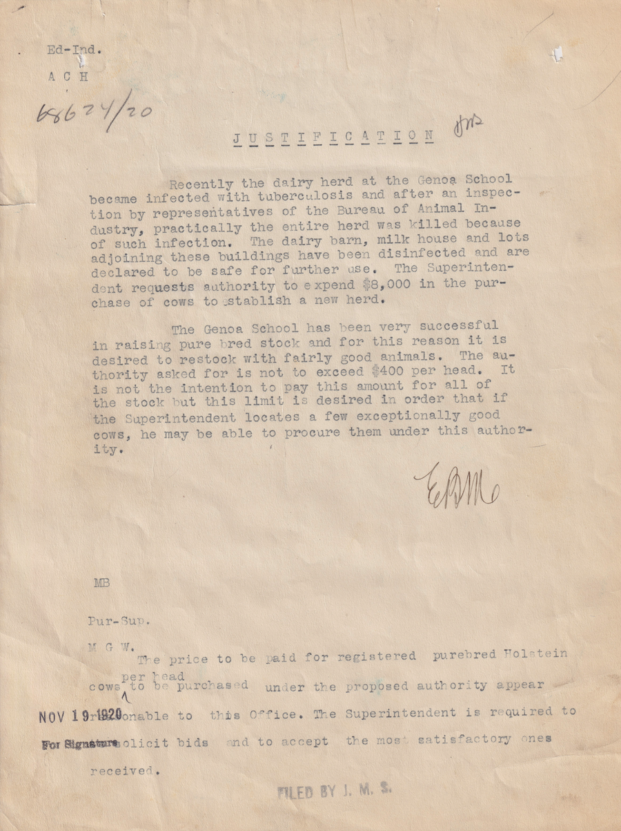 Memorandum for Justification, 19 Nov. 1920; Folder: 102442-1917-733, Box 19; Central Classified Files, 1907–1939 (NAID 300324); Office of Indian Affairs; Record Group 75; National Archives and Records Administration-Washington, DC.