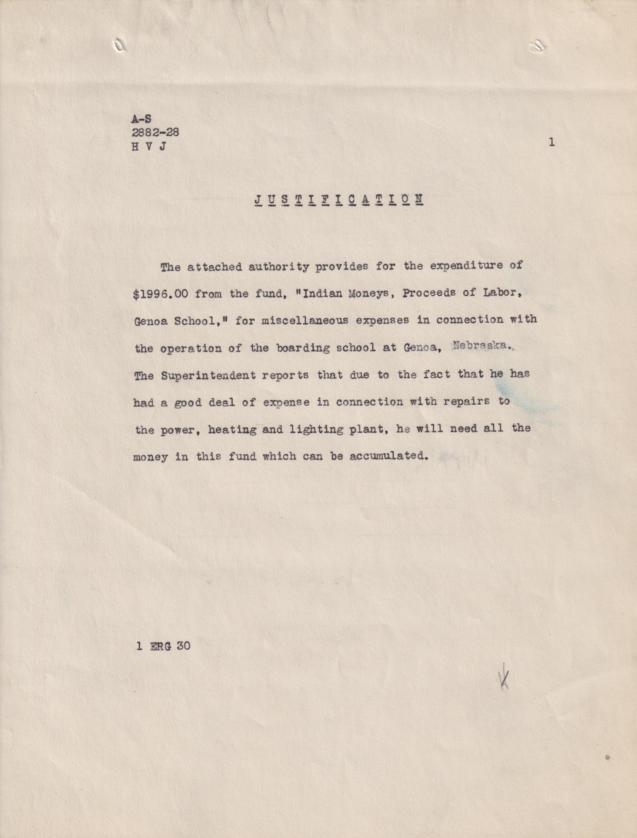 Memorandum for Justification, c.1928; Folder: 51800-1927-410, Box 17; Central Classified Files, 1907–1939 (NAID 300324); Office of Indian Affairs; Record Group 75; National Archives and Records Administration-Washington, DC.