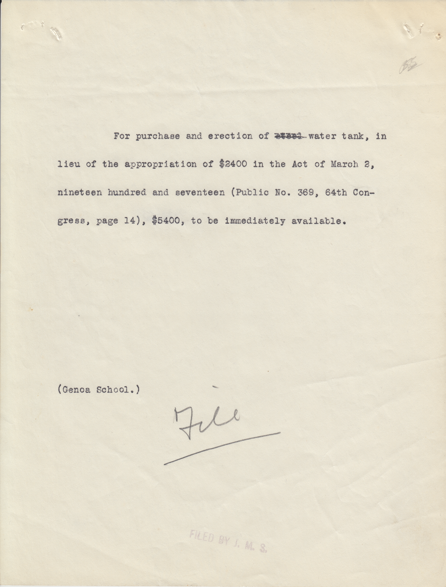 Regarding the immediate appropriation for the purchase and erection of a water tank.Identifier: