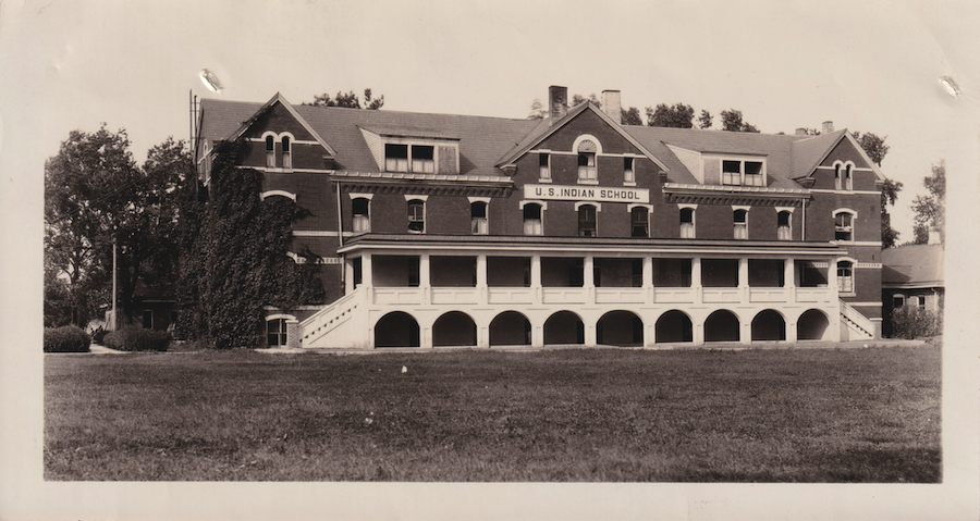 Depicting school building with "U. S. Indian School" signage.Identifier: