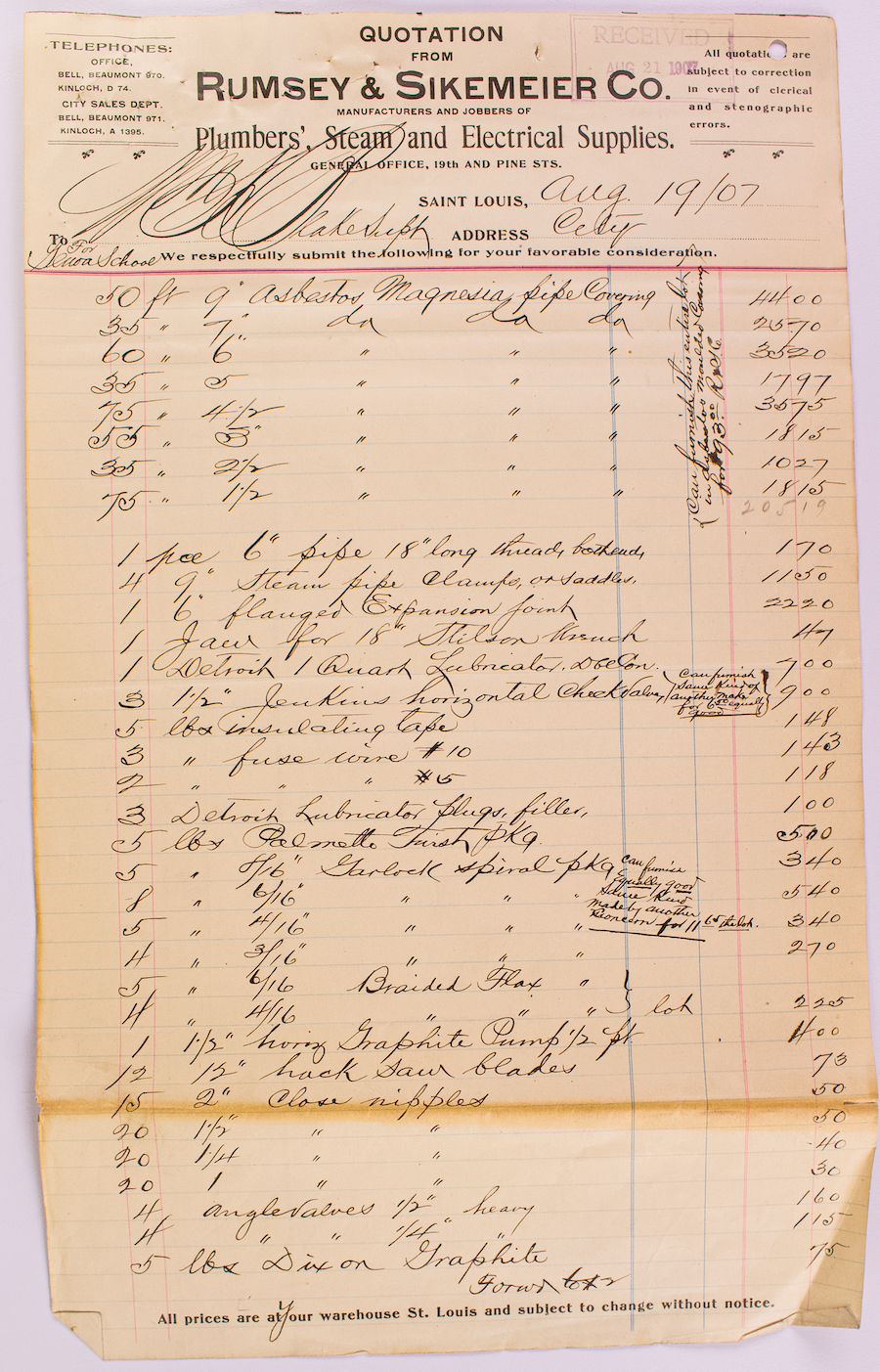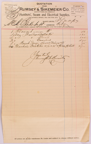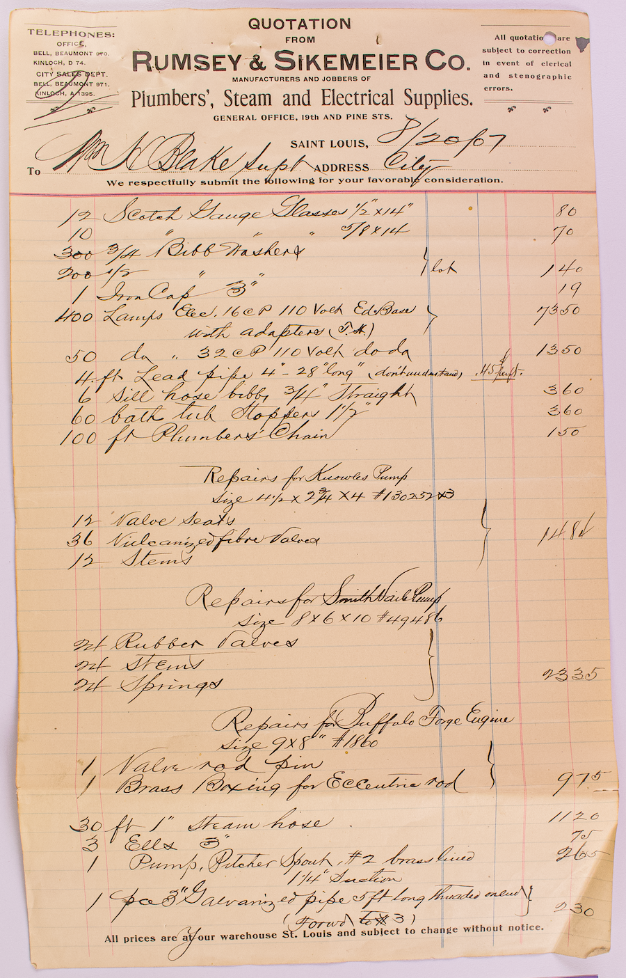 Quotation from Rumsey & Sikemeier Co. to William H. Blake, 20 Aug. 1907