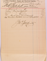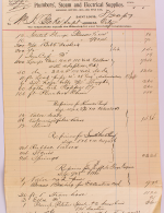 Regarding an itemized quote for scotch gauge glasses, iron caps, lamps, lead pipes, hoses, plumber chains, valves, springs, and eccentrics.Identifier:
