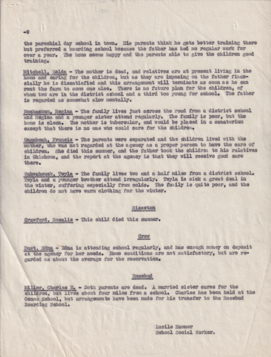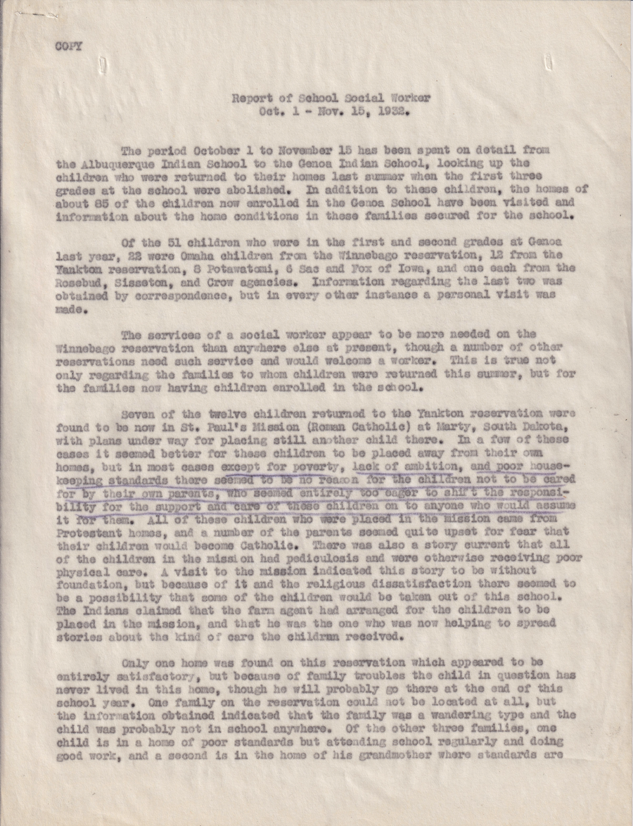Report of Lucile Hamner, 1 Oct. 1932; Folder: 45539-1930-800, Box 20; Central Classified Files, 1907–1939 (NAID 300324); Office of Indian Affairs; Record Group 75; National Archives and Records Administration-Washington, DC