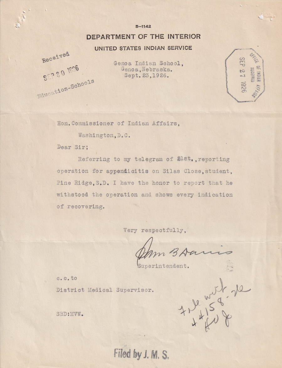 Telegram from Davis to the Indian Office, 21 Sept. 1926; Folder: 43932-1926-732, Box 19; Central Classified Files, 1907–1939 (NAID 300324); Office of Indian Affairs; Record Group 75; National Archives and Records Administration-Washington, DC.
